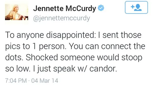 Spočiatku dôkaz. Jennette McCurdyová tweetovala po tom, čo jej akty prenikli online ... Pozrite sa, čo povedala. Veríš jej?