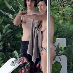 Odhlásiť sa Paulina Porizkova nahé prsia na karibskej pláži, zatiaľ čo si užívala slnko a more so svojím oveľa mladším priateľom! Až na to, že ju prebleskla prepadnuté prsia , Ukázala jej Paulína zadok v maličké bikini nohavičky , kde ju môžete vidieť starý plochý zadok snaží sa dostať späť v nohavičkách!